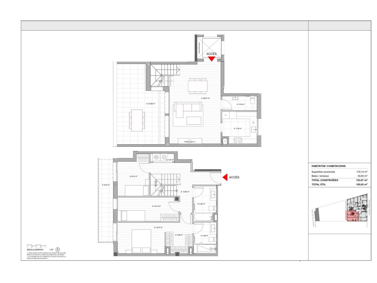 Invertido, con acceso por ascensor comunitario a las dos plantas. En la planta bajo cubierta está la zona de día, con un amplio salón-comedor exterior a una terraza de 24 m² con mágnificas vistas y soleada, cocina independiente, y un aseo. En la planta inferior está la zona de noche, con 3 habitaciones (2 dobles, 1 suite con vestidor), armario lavadero, y 2 baños.